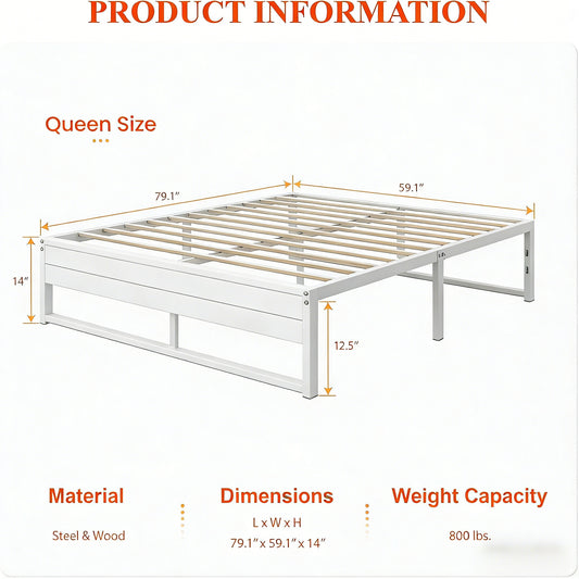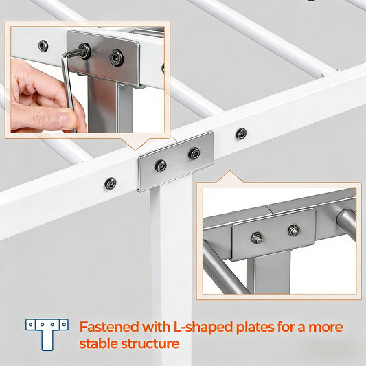 Full-Size White Steel Bed Frame with High Weight Capacity
