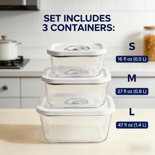 Vacuum Seal Glass Food Storage Containers (3-Piece Set)
