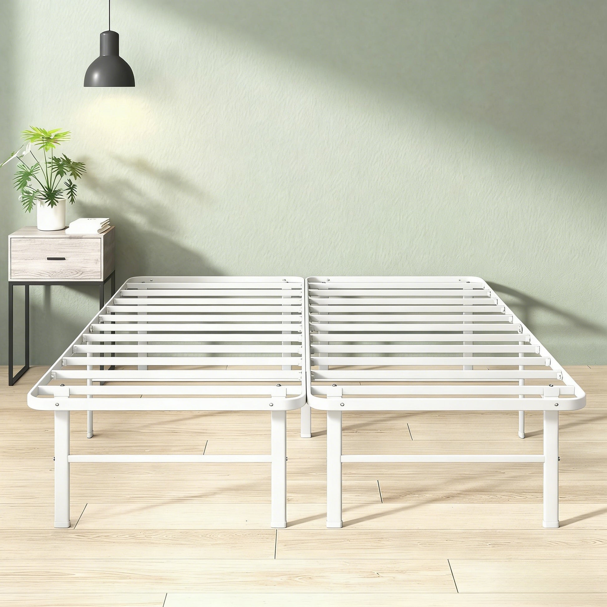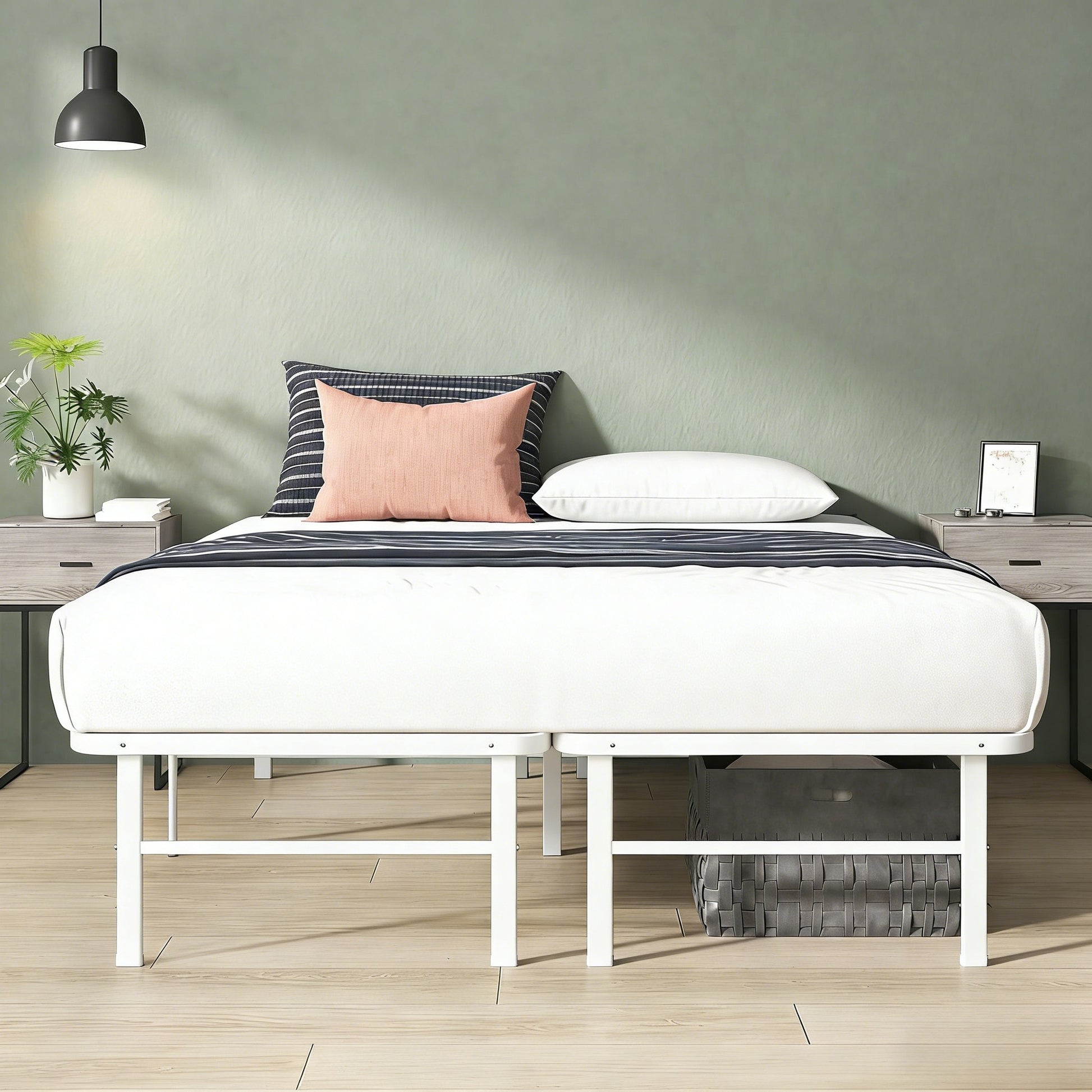 White Metal Bed Frame with Easy Assembly & Under-Bed Storage