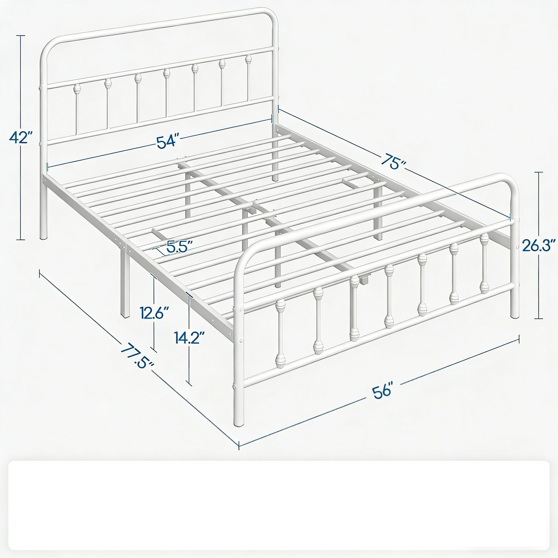 • Under-Bed Storage: 14.2" of space below for bins or boxes (fits 12.6" containers).